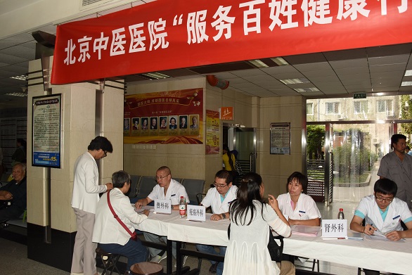 9月14日,我院按照市卫计委的要求选派推拿科、风湿病科、针灸科、妇科、肿瘤科的5名主任医师参加了北京市卫生和计划生育委员会和北京市中医管理局组织的北京市“服务百姓健康行动”暨“邻里守望”进社区大型义诊活动,义诊232人次,发放宣传资料500份。