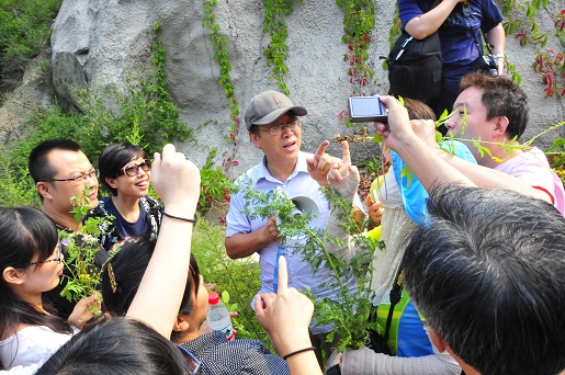 延庆松山植被丰富,拥有丰富的药用植物资源,适合中药药用植物的学习与鉴别。本次活动,药学部特别邀请北京中医药大学刘春生教授等六位指导老师,现场给大家上生动的药用植物学课。老师们仔细讲述了草乌、苦参、黄精、玉竹、天南星、仙鹤草、益母草等植物的形态特征及鉴别要点,许多都是在药房里接触不到的知识。同时指出,目前医疗机构的从业人员对中药鉴定和辨识多针对于饮片,对药材少,对原植物就更少。作为中药专业人员,应当加强对中药原植物的认知和辨识。