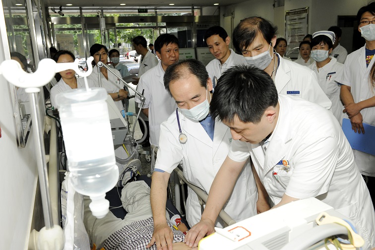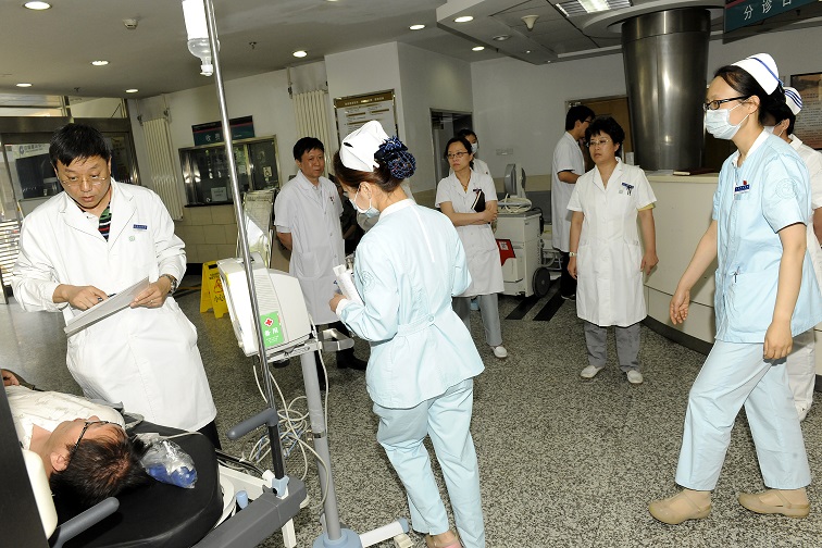 5月29日3:30分,急诊科接到医务处指令,“刚刚接到北京市卫计委电话,要求我院接诊三名伤员,请启动应急预案,做好应急准备” 。随着指令的下达,我院医疗应急演练正式开始。