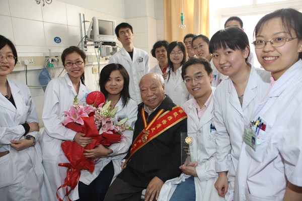 图为贺普仁和年轻医生在一起
