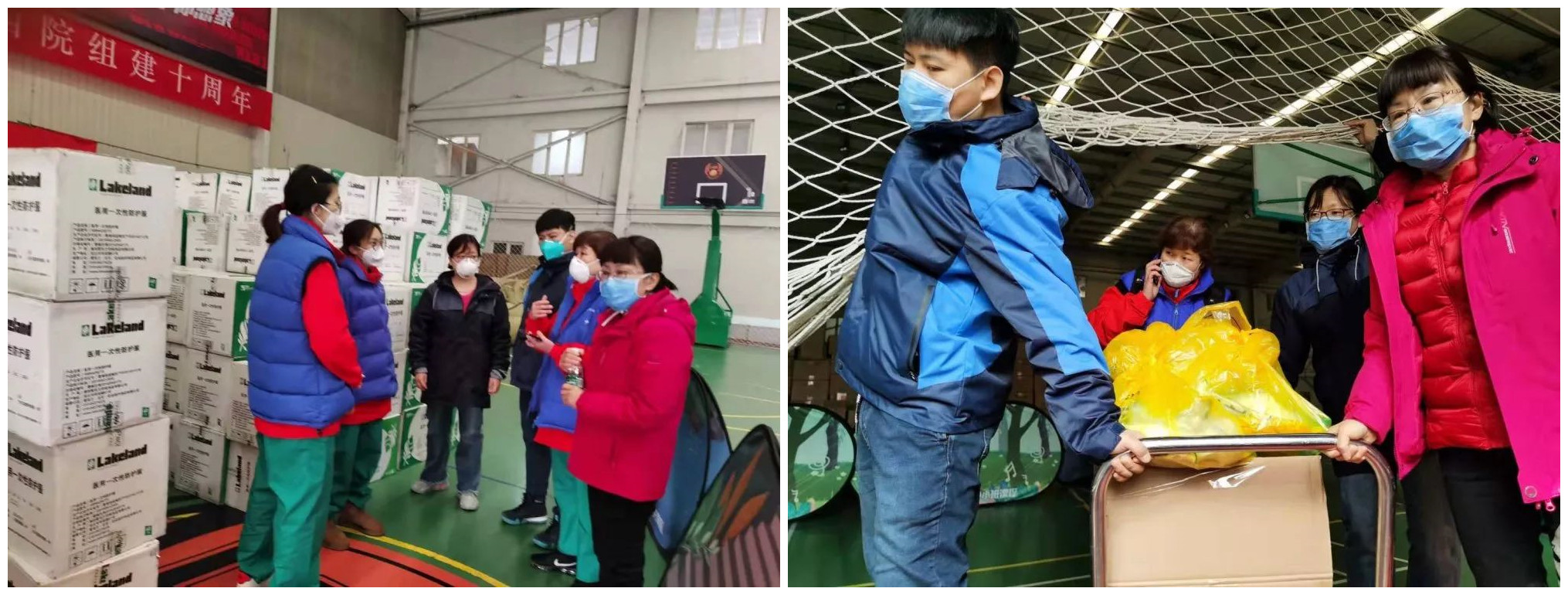 1月29日,大年初五,医疗队到达武汉第二天。一早,医疗队临时党支部书记关丽和队员蔡卫敏来到武汉协和医院西院区隔离病房,熟悉院感流程,练习隔离区隔离衣的穿戴。与此同时,其他队员集中整理、分配、打包物资,一旦接到通知,立刻进入病区工作。
