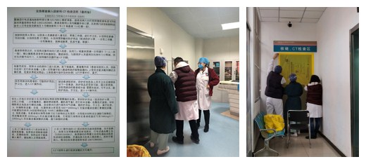 因我院空间格局所限,如何最大限度减少筛查患者的交叉感染,是医院及放射科的工作重点。几经讨论,医院决定单独开放胸部CT筛查室。放射科全体医护人员牺牲春节假期,紧急疏清通道、准备5号楼3号CT室检查物资。作为筛查患者第一线,只有抢在全员上岗前做好5号楼3号CT室准备工作,才能有效降低院内交叉感染的风险。