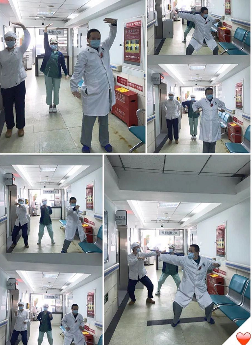 活动得到了全体职工的大力支持和积极响应。大家利用休息时间,因地制宜,在楼道、在走廊、在休息室,结伴练习,互相纠正动作,切磋心得,交流经验体会,并以科室或职工小家为单位,录视频、拍相片。下班回家,茶余饭后,带动家人一起练习。综合科医生刘玉超,在武术、气功方面颇有心得,动作规范到位,他专门录制了整套八段锦标准动作供大家学习参考。经过一个多月的练习,职工学打八段锦的热情高涨,动作规范流畅,养成了每天练习的好习惯。