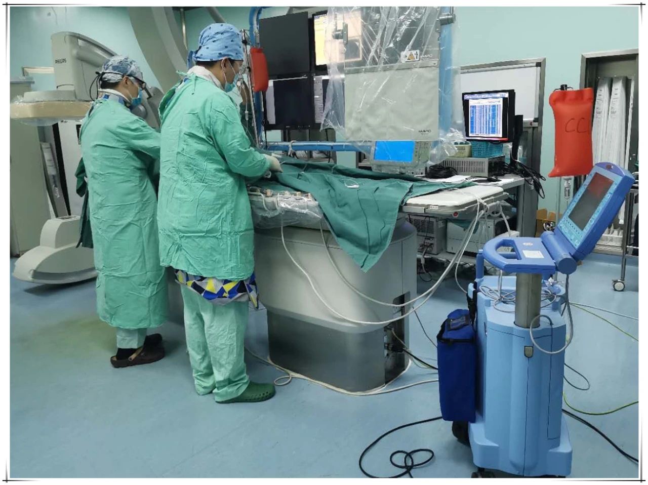 刘主任带领心血管科介入团队展开手术。由于病变在前降支近段,病情较重,术中高大爷血压降低,医生立刻行主动脉球囊反搏术(IABP),一方面增加其冠脉灌注压,增加供血,另一方面降低心脏后负荷,给缺血的心脏减负。经球囊扩张,血栓抽吸,前降支植入支架,高大爷前降支血流逐渐恢复,胸痛明显缓解,术后安返CCU监护室。
