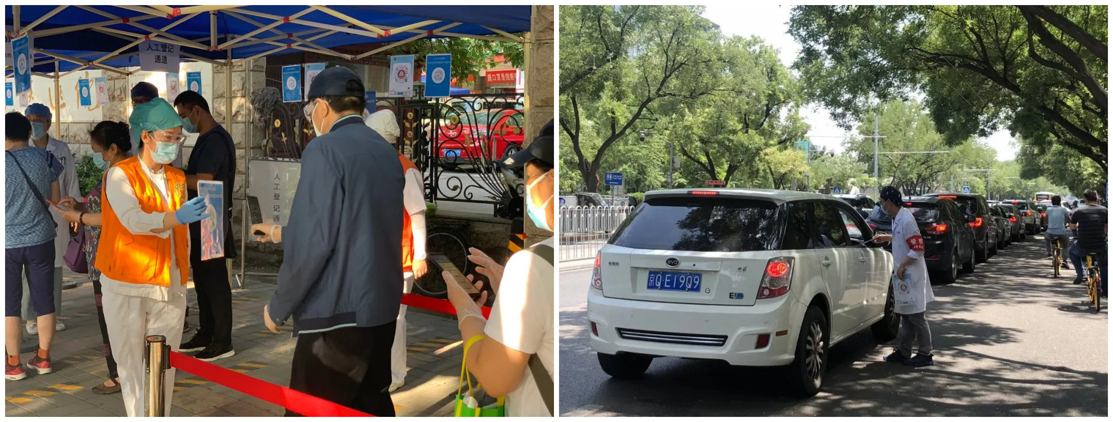 在人流攒动的预检入口维持秩序,在暑热腾腾的排队入院车流中提示扫码。宽街人不惧酷热,不畏风雨,只为更安全的就医环境,更便捷的入院程序。