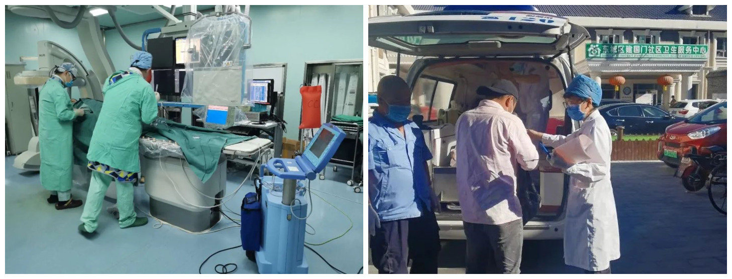 9月的一个早上,我院胸痛中心周琦副主任医师接到医联体建国门社区卫生服务中心电话,电话那边,声音急促,说一名胸痛患者来到社区就诊,心电图提示很可能是急性心梗,看能否尽快到我院胸痛中心救治。周琦大夫得知后,让其迅速转诊,同时组织胸痛中心团队在医院等候,争取最大程度缩短患者就诊时间,迅速开通病变血管。很快患者由120一路送到我院急诊,进行急诊介入治疗。