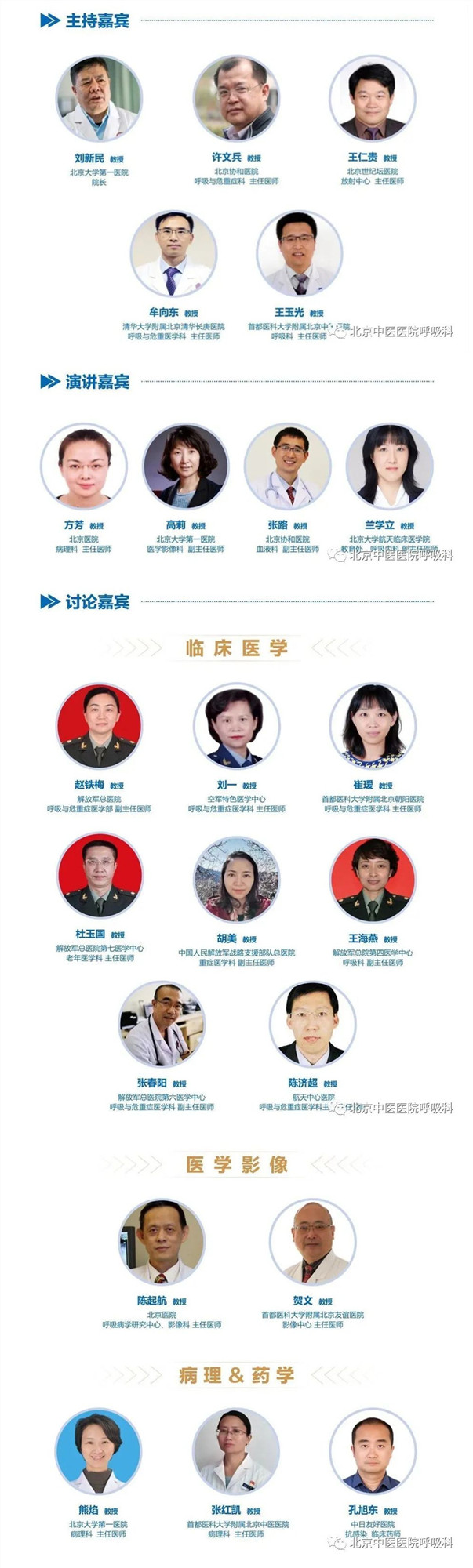 北京大学第一医院院长刘新民、北京协和医院呼吸科许文兵教授、北京世纪坛医院放射科王仁贵教授、清华大学附属北京清华长庚医院牟向东教授、我院呼吸科王玉光教授分别主持会议及病例讨论。