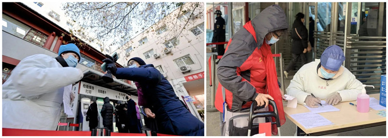 第二天,承担预检分诊任务的工作人员早早来到医院,换装完毕,她们按照新的调整方案,放置新的分流设施。7点一过,在预检分诊人员和志愿者的协助下,就诊患者有序扫码,一部分已经在医院大门外户外自助区取过挂号条的患者沿着隔离带来到门诊大厅入口处,挂号条上清晰显示了患者在预约号源时预先接受过的流行病学调查,便于患者出示结果并顺利进入门诊楼,大大节约了一级预检分诊用时。