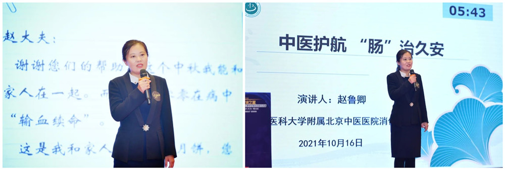 我院消化科赵鲁卿副主任医师以“中医护航 ‘肠’治久安”为题进行演讲,讲述了与溃疡性结肠炎患者之间动人的医患故事,并介绍了中医药创新发展的科研方向,最终获得“未来之星”培育计划“健康使者”称号。