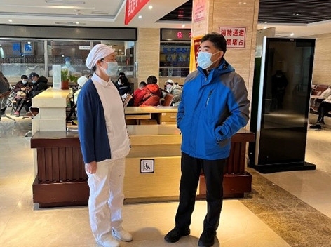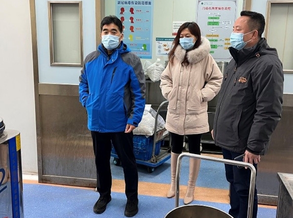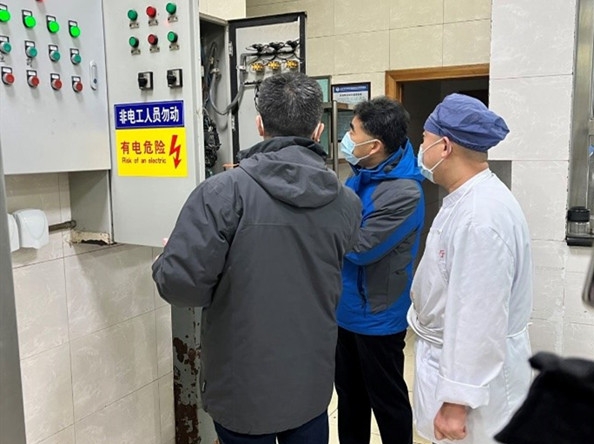 董杰昌书记一行先后来到门诊楼、病房楼、明医馆、代煎室、职工食堂、营养食堂、司机班、中控室,针对大功率电器使用、安全出口与疏散通道、消防设施配备、施工动火与员工“四个能力”掌握、消防安全管理制度落实及专业人员持证上岗情况进行了检查。