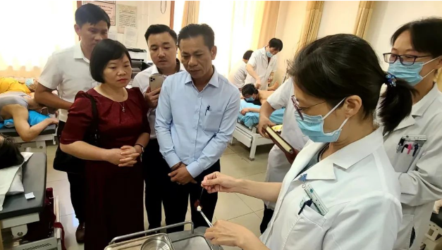 院长刘清泉、副院长李彬及针灸中心部分专家与到访专家会面。李彬主持会议,介绍医院总体情况、中医优势特色以及针灸科发展历程、学术传承和成绩荣誉。火针、金针等代表性针灸特色技法,引起越南专家组的阵阵赞叹与热烈反响。