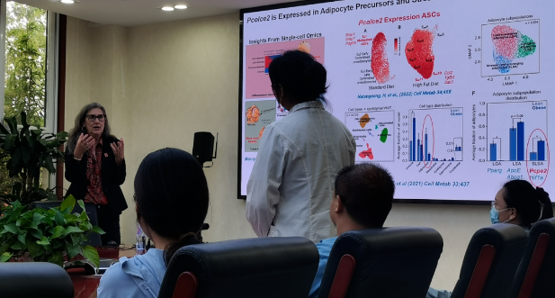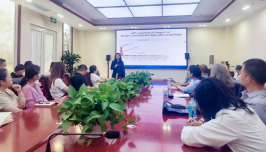 Hanrui Zhang教授专长于人类多能诱导干细胞分化、CRISPR基因编辑和高通量CRISPR筛选,多年来致力于探究巨噬细胞异质性和可塑性在心血管代谢疾病中的机制和治疗意义,本次报告围绕巨噬细胞生物学特性和基因功能组学,阐述如何利用CRISPR基因编辑和高通量CRISPR筛选等实验技术和数据库,获得调控巨噬细胞胞葬功能的靶蛋白wdfy3,并构建转基因动物模型,进行表观遗传学验证的研究。Mary教授则首次阐明了Pcpe2在脂肪组织重塑和脂蛋白代谢中的作用,并对其可能机制进行预测。
