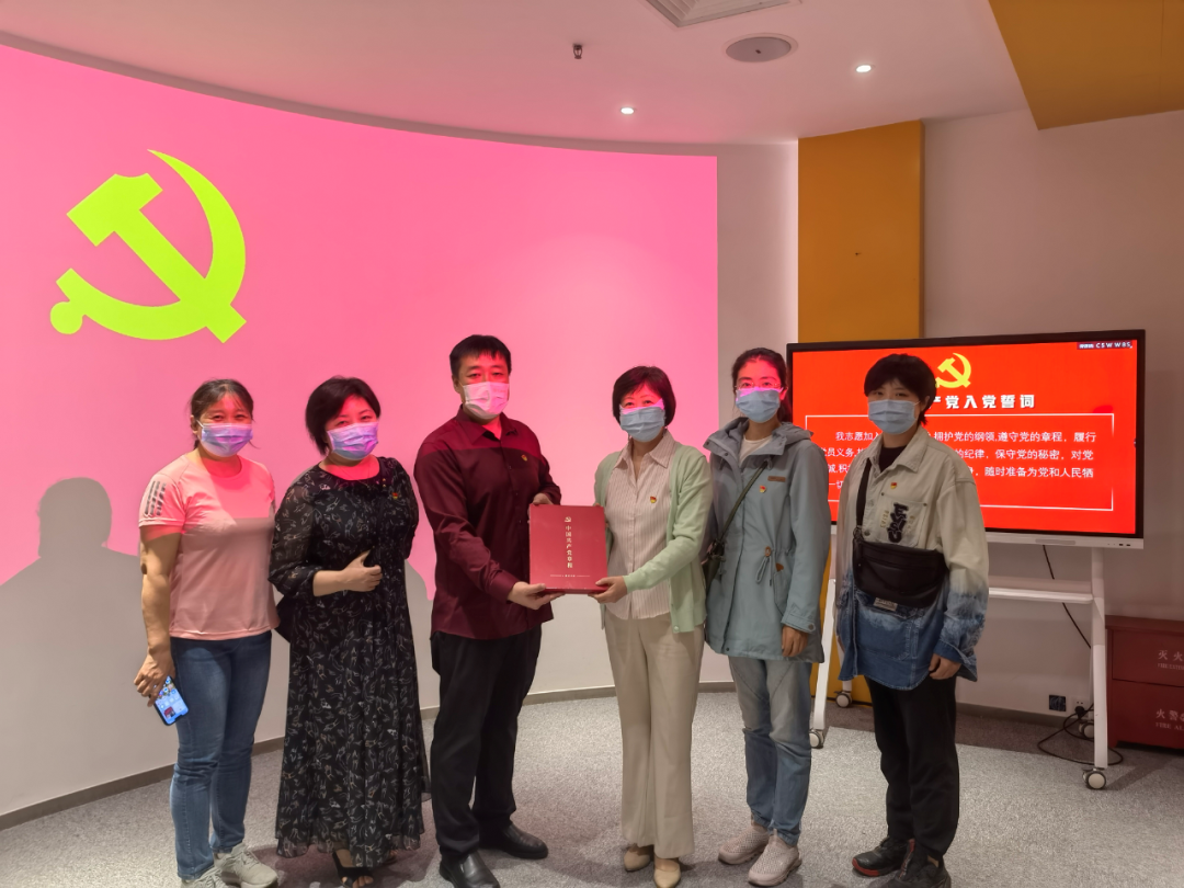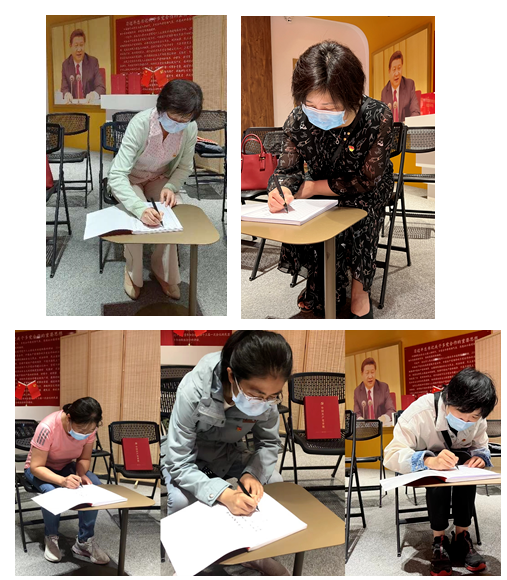书店为皮肤科党支部的党员们赠送了他们的原创文创产品——“中国共产党章程描红手抄套装”,借此党员们重温了入党誓词,认真学习了党章,并现场抄写了部分党章。