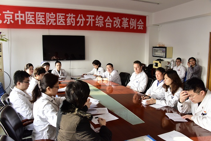 3月22日北京市启动医药分开综合改革以后,我院立即启动医药分开综合改革例会制度,每工作日早晨8点开始,院级领导及所有职能处室领导汇聚一堂,传达上级指示精神,部署医院工作,报告前一天工作进展,沟通存在问题,及时协调解决。