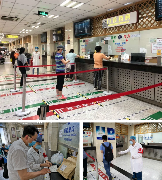 我院药房区域位于大厅北侧,空间相对狭小,容易产生聚集。药学部组织中药房、成药房等多部门负责人召开沟通会,制定督导方案。中药房(含门诊代煎室)、成药房克服人员紧张等困难,每天安排十余名人员轮流上岗,确保高峰期有5-8人维持秩序。督导人员尽职尽责,提示来院患者戴好口罩、保持1米安全距离、防止人员聚集等,也为患者答疑解惑药学知识,进一步提升了医疗服务质量。