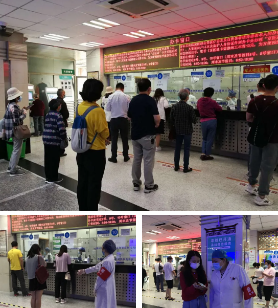 医院门诊大厅往往是患者较为集中的场所,人流量大、流动性强,容易造成短时间聚集。为了有效疏导患者,营造安全的就医环境。药剂党支部和财务党支部承担起门诊大厅药房及收费办卡处,南北两大区域的督导工作,作为医院一级预检分诊的延伸,将督导工作细化落实到医院的每个角落。