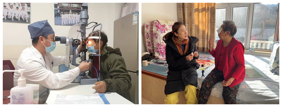 时琳了解情况后,到赵大爷家中进一步了解病情:刘大妈确诊“双眼白内障及右眼胬肉”,高脂血症、转氨酶升高、甲状腺结节,且伴有轻度焦虑。综合以上情况和刘大妈日常用药,时琳运用自己的药学专业知识分析后建议进行白内障手术、停服部分药物。随后,时琳联系我院眼科沟通患者的基本病情,科室表示一定支持第一书记工作,安排科里配合完成相关诊疗工作。