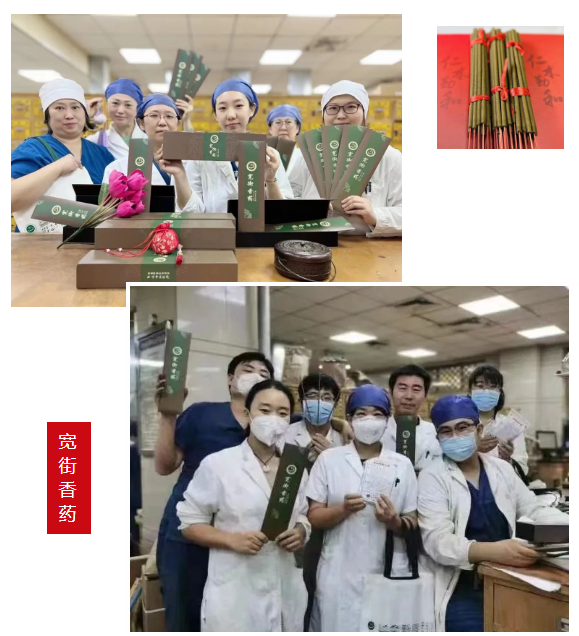 “宽街香药”由我院药学部研制,含有茅苍术、蕲艾绒、安息香等著名上品防疫香药,具有芳香化浊,避秽扶正之功用。主要用于人员较为密集的公共场所,具有强力消毒、杀菌、清洁空气的作用。相比较化学消毒品,更具天然植物香药的环保、健康、天人合一的自然属性。古代验方汇编《良朋汇集经验神方》中有“凡遇天年大行瘟疫,四时不正,一切疠气者,多以苍术烧之,能辟瘟邪,至奇”之说。
