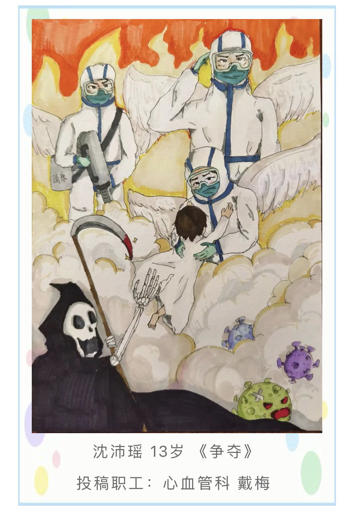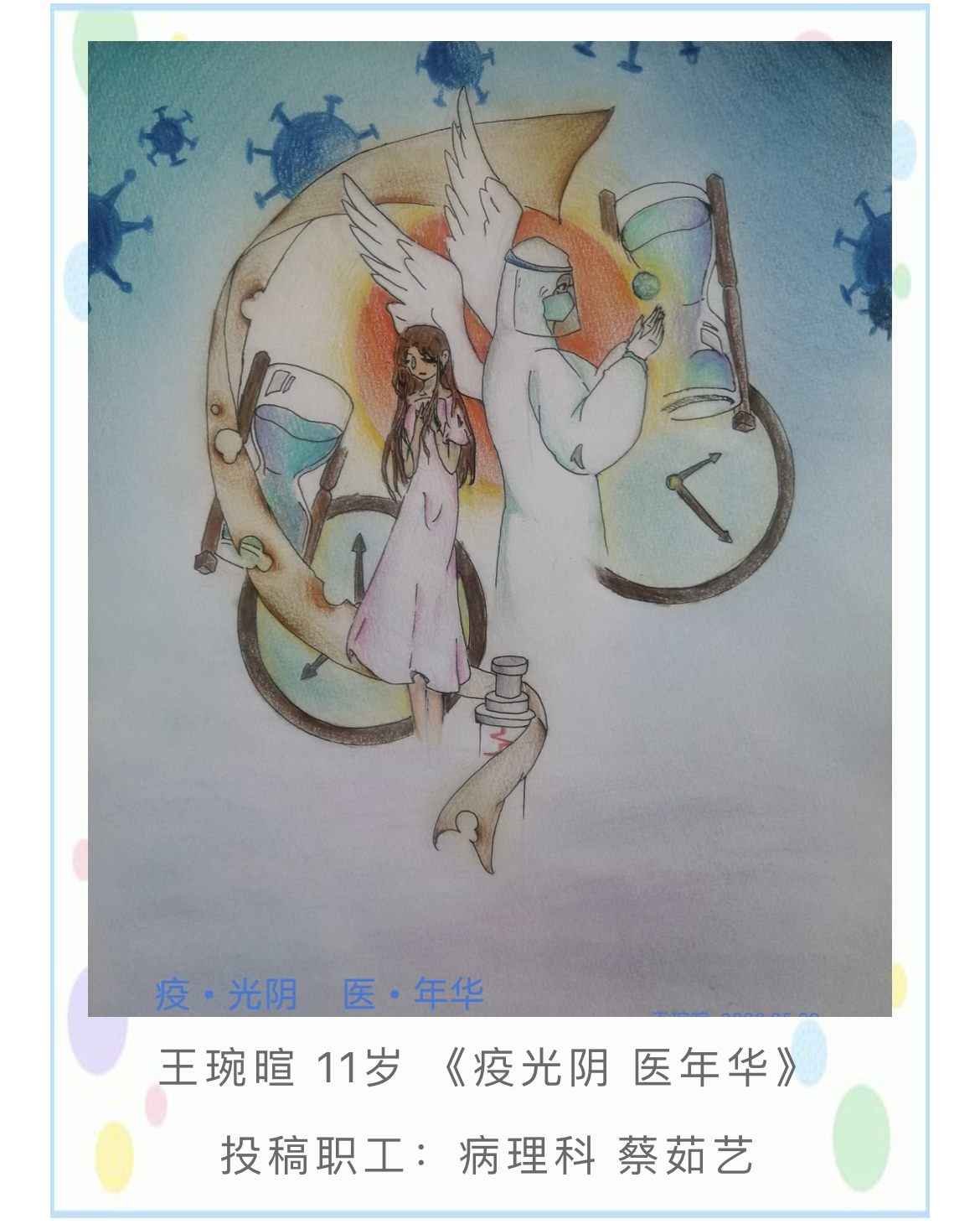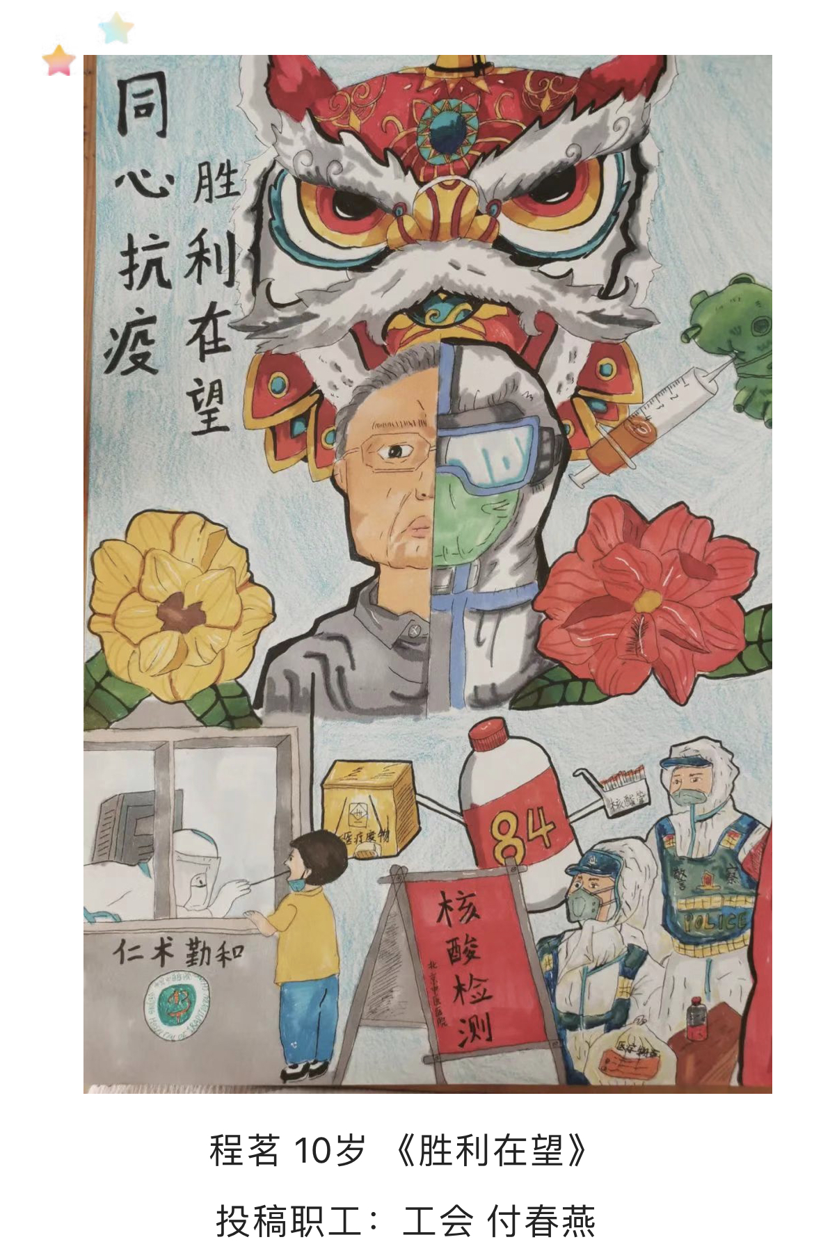 为加强对职工的关心关爱,丰富广大职工子女的居家学习生活,展示绘画写作才能,在“六一”儿童节期间,医院工会举办“我的爸爸妈妈在抗疫一线”职工子女书画写作比赛,通过比赛让孩子们了解疫情防控相关知识,进一步理解、支持爸爸妈妈的工作。
