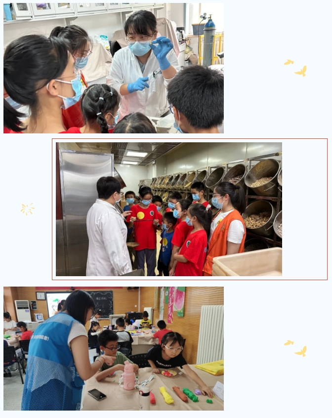 实践活动丰富,探秘学以致用。托管班不是把孩子们“圈”在医院,而是带他们到更广阔的天地学习。内容丰富,独具特色的实践活动,使孩子们回味无穷。通州杏林药业 “中草药探秘小使者”活动,通过参观百草园识药认药,孩子们了解草药的种植、炮制和方法中医药文化发展史,体会中医药文化魅力。厚泽食育教育基地参观,带领孩子们了解中国饮食文化和农作物生长加工过程,引导他们养成健康饮食习惯。参观国家动物博物馆(中国科学院动物研究所标本展示馆),孩子们了解生命的起源、生物的多样性,感知生命的神奇。圆明园国学礼仪体验,让孩子们进一步了解中华优秀传统文化,感受中华文化的博大精深,接受传统文化和人文精神熏陶。
