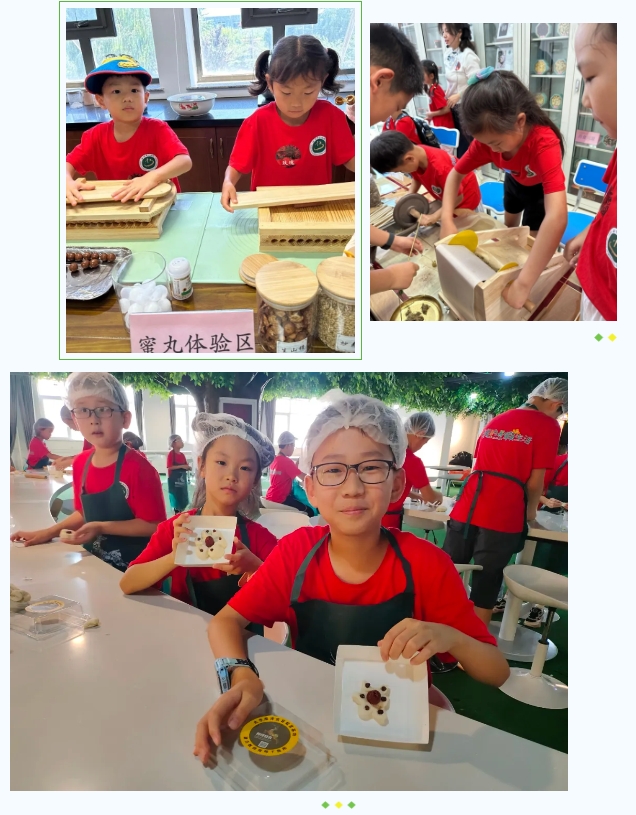 艾灸条是怎么来的,从把艾叶捻成艾绒开始,自己动手做。香囊是怎么制作的,里面有什么药材,自己动手装。开胃消食的山楂丸是从木质的搓条板里搓出来的,自己动手搓。驴打滚怎么做的,饭团怎么卷的,花馍怎么蒸的,从和面开始,全部自己制作完成。扎染、做奶茶、非遗掐丝珐琅制作、为父母制作蝶骨巴特包,跟父母一起动手和面包饺子…….每一项体验课程,能动手操作的,全部交由孩子们亲自上手操作,增加趣味性与成就感。
