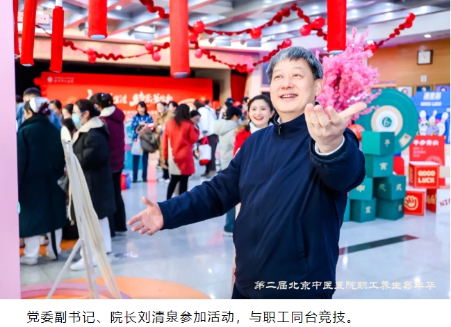 北京中医医院党委书记刘中勋宣布嘉年华活动开场,感谢广大职工一年的辛勤付出,医院的各项事业取得长足发展,希望在“冬至”、“时辰”的中医特色文化活动和游戏比拼中,职工们各展所长、各显风采!