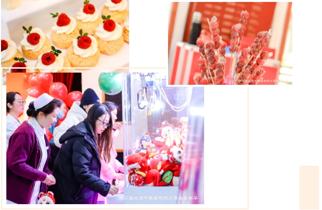 茶歇区准备了老北京特色糖葫芦、精美小蛋糕、养生小零食等,好看好吃。抓娃娃机前面排起了大长队,随着抓手的起起落落,每一个娃娃的成功夹起伴随着观众的阵阵欢呼。