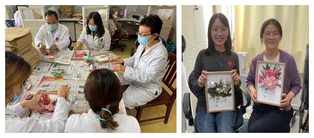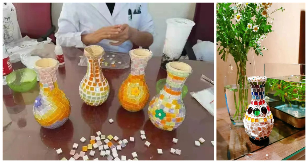 针灸科、口腔科等科室组织了“马赛克花瓶制作”,花瓶立刻就派上了用场。
