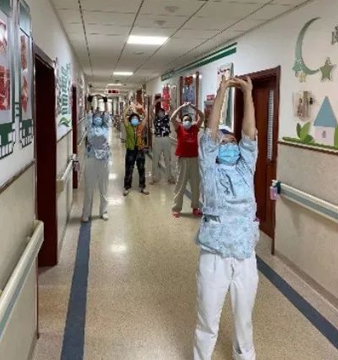 “各位患者,我们每天一次的八段锦活动马上就要开始啦!”