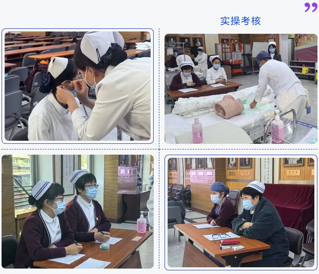 理论考核采用电子考试系统,分别从基础护理、内科护理、外科护理、中医护理等领域全面考核低年资护士的理论知识水平。考试期间,护理部副主任关丽、教学主管王东宣全程巡视督查,充分保障了考试的严谨和公平。通过以考促学,调动低年资护士的学习积极性,夯实低年资护士的理论基础。