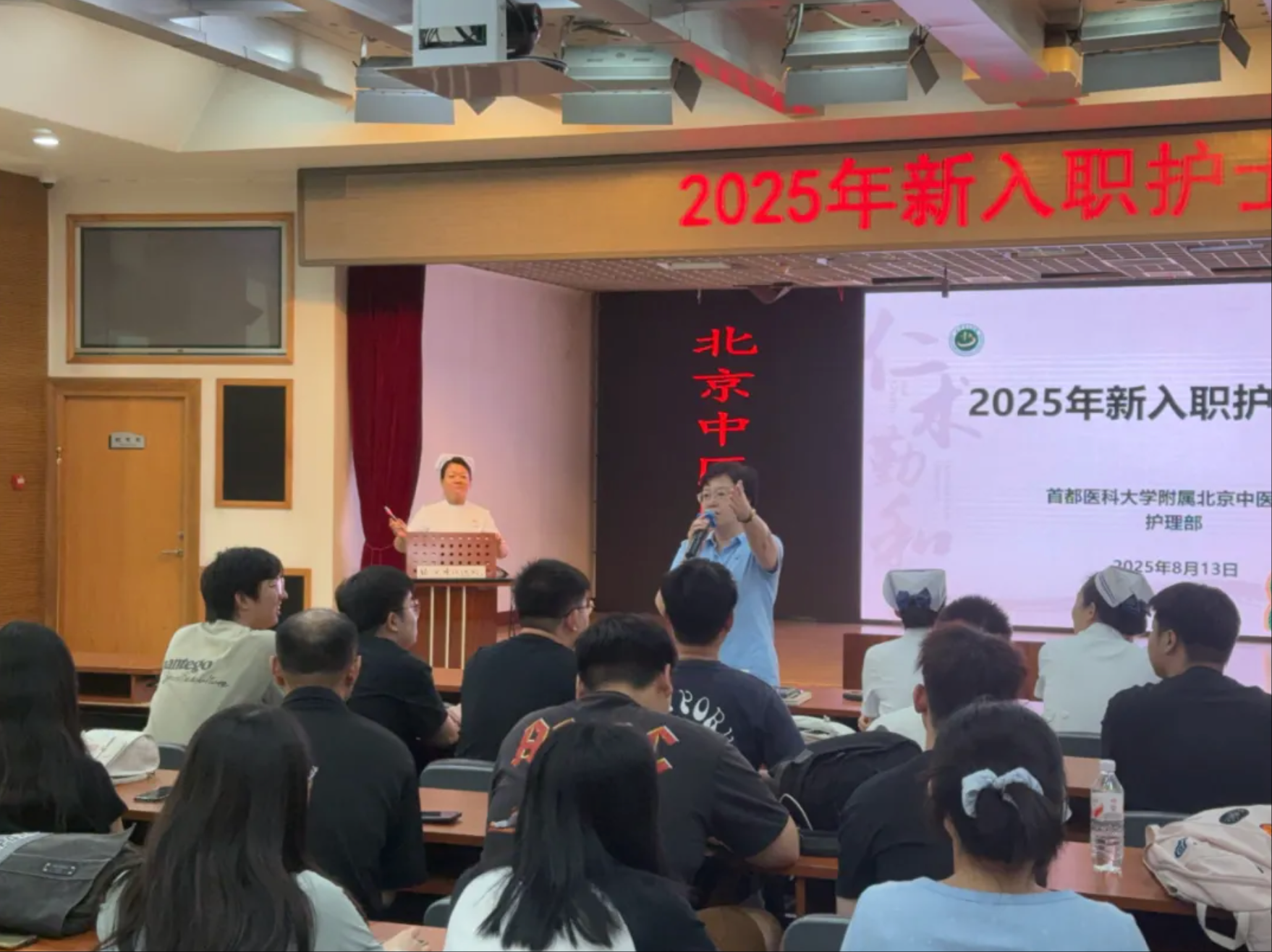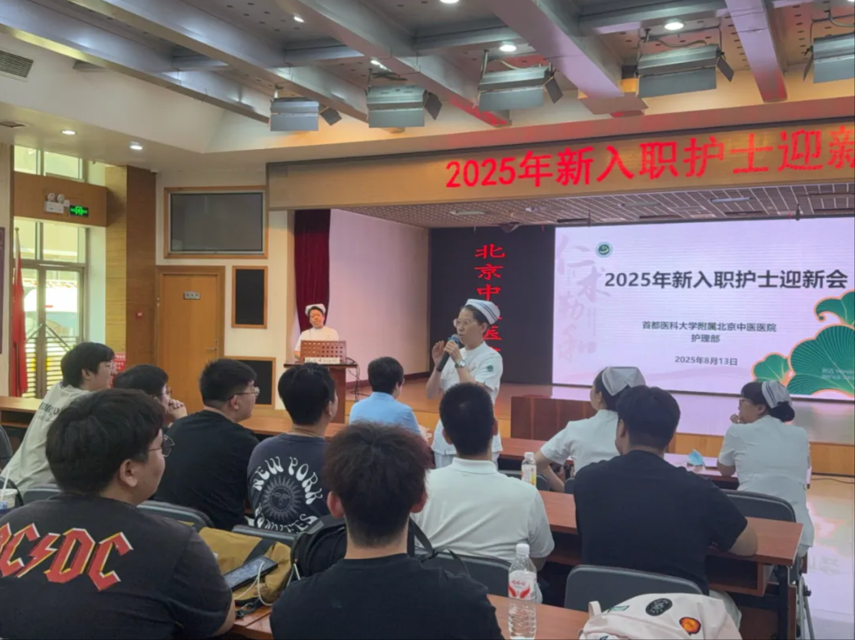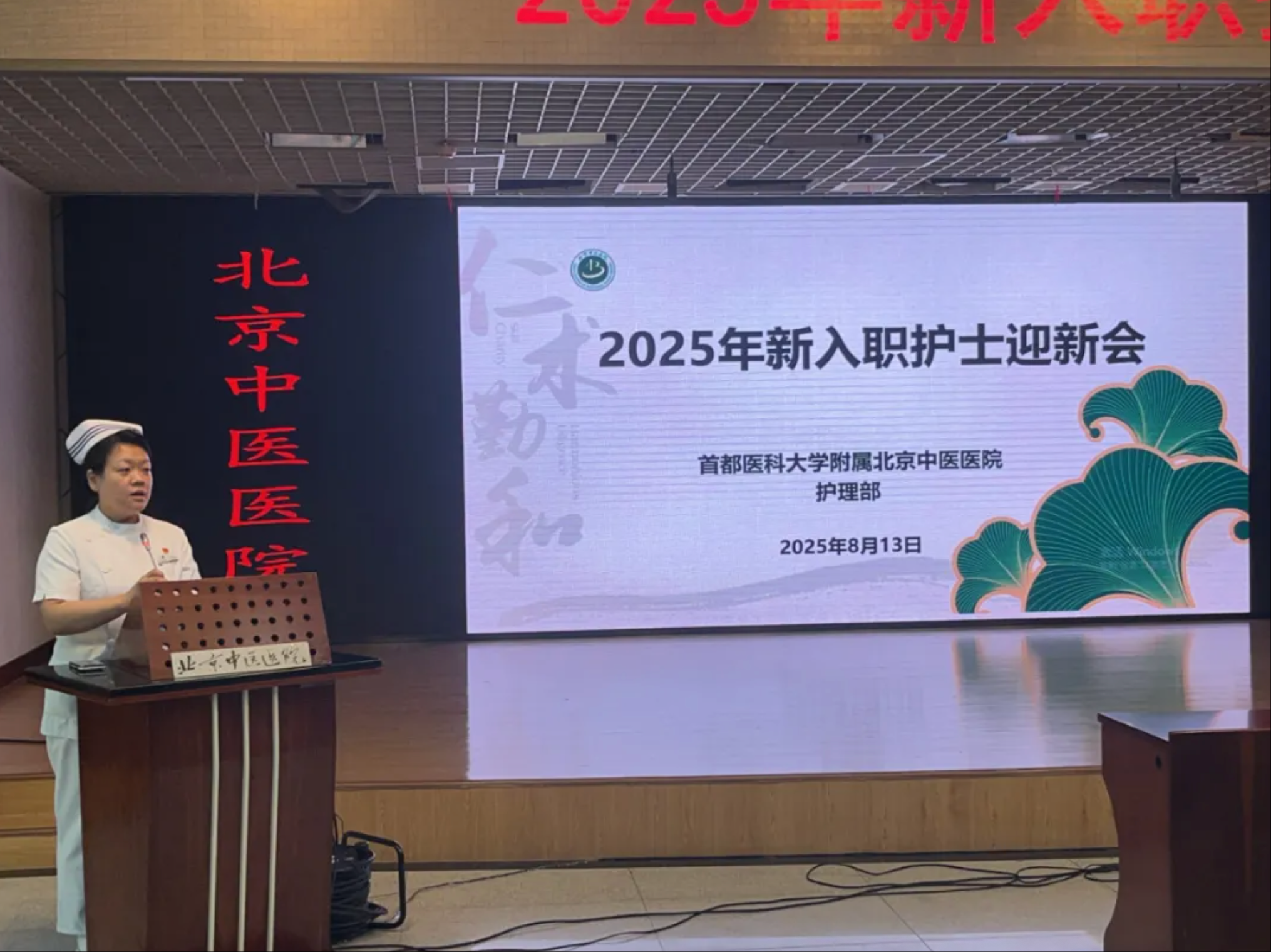 8月13日,首都医科大学附属北京中医医院举行2025年新入职护士迎新活动。护理部主任裴晓璐、副主任关丽,大科护士长、各科室护士长及教学主管齐聚一堂,与全体新入职护士共同开启职业新篇。