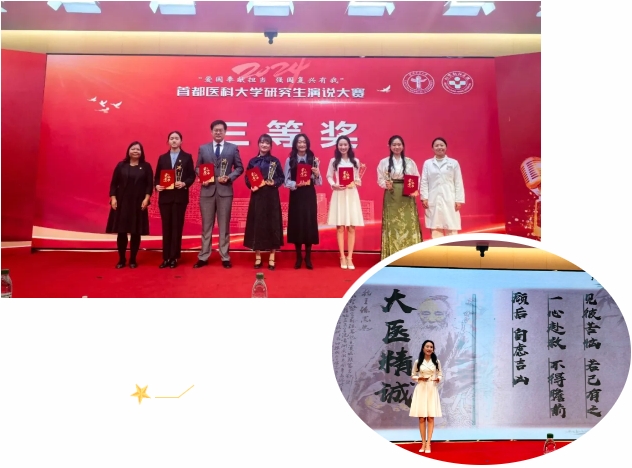 在首都医科大学“爱国奉献担当 强国复兴有我”研究生演说大赛中,2024级中医外科学博士研究生卢欣宇表现出色,荣获三等奖。她在比赛中以真挚的情感和深刻的见解,赢得了评委和观众的一致好评。