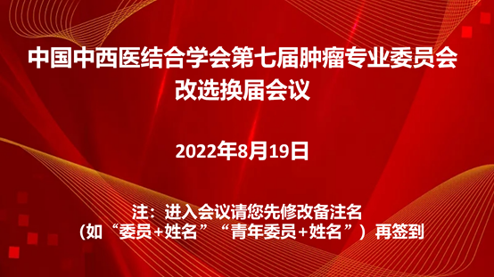 8月19日,中国中西医结合学会肿瘤专业委员会改选换届会议顺利举行,经线上投票选举产生第七届肿瘤专业委员会成员,我院王笑民主任医师当选主任委员、杨国旺主任医师当选秘书长,于明薇副主任医师、张怡医师当选青年委员兼秘书,念家云医师当选青年委员,第七届专业委员会挂靠首都医科大学附属北京中医医院。