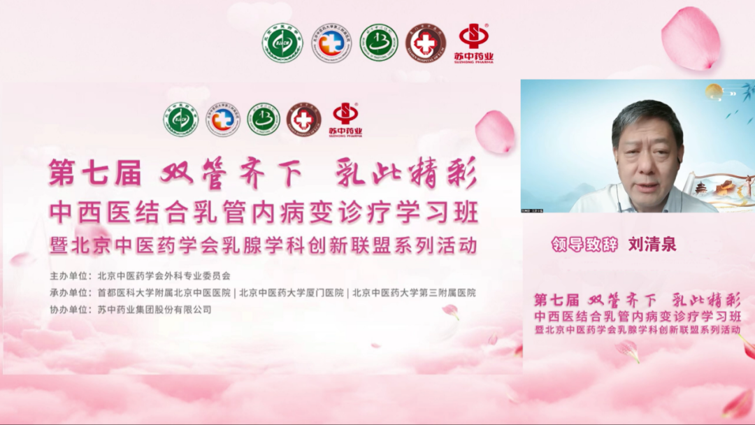 北京中医药学会副会长、外科专业委员会主任委员裴晓华教授代表学会对会议的召开表示祝贺,并对既往6届中西医结合乳管内病变诊疗学习班的工作给予充分肯定。
