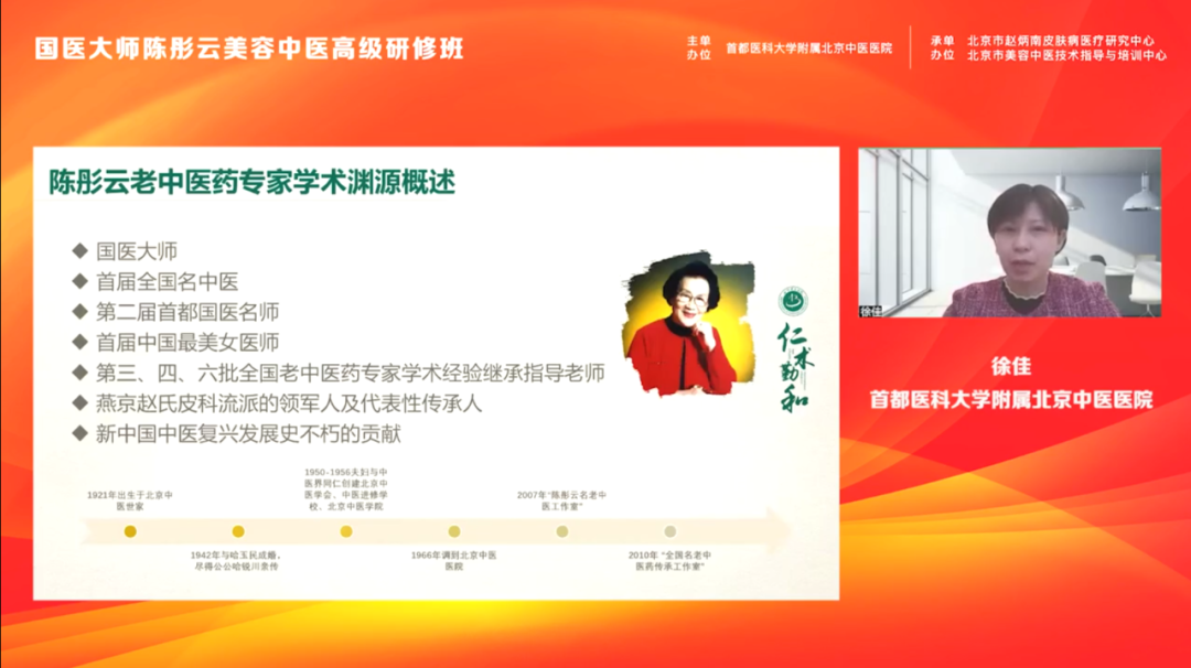 “陈彤云美容中医高级研修班”邀请了曲剑华、刘巧、蓝海冰、徐佳、李丽、王萍、曹毅、李领娥、赵俊英、孙丽蕴、吕景晶等陈彤云大师部分弟子及全国知名专家、学者演讲及授课。