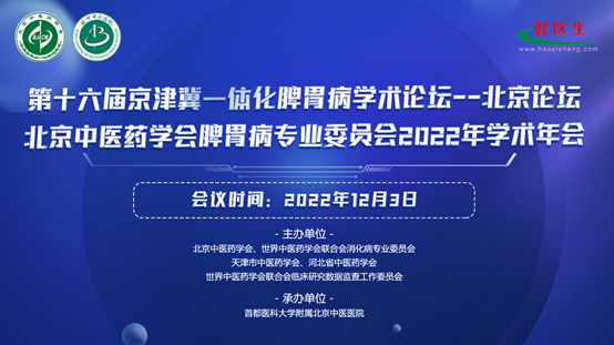 12月3日,由北京中医药学会、世界中医药学会联合会消化病专业委员会、天津市中医药学会、河北省中医药学会、世界中医药学会联合会临床研究数据监查工作委员会联合主办,首都医科大学附属北京中医医院承办的“第十六届京津冀一体化脾胃病学术论坛-北京论坛”暨“北京中医药学会脾胃病专业委员会2022年学术年会”在线上顺利召开。