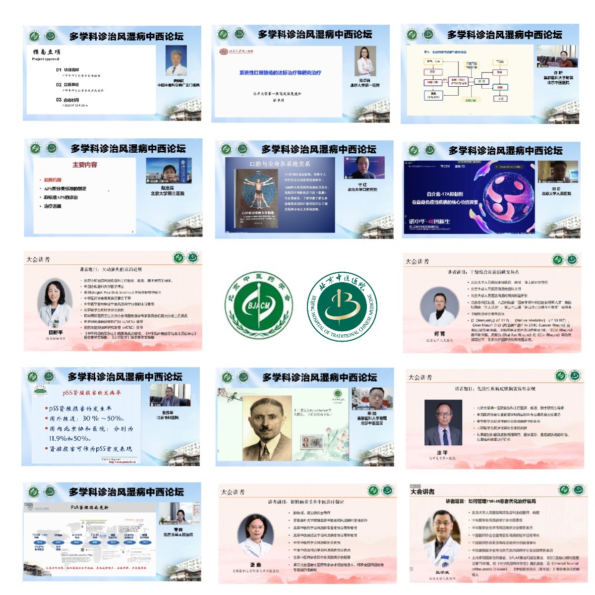 会议围绕常见风湿免疫病多系统受累的临床特点,邀请了相关学科的中西医多位知名学者从风湿免疫科、妇科、呼吸科、皮肤科、口腔科等不同角度,畅谈风湿免疫疾病的临床治疗方案,重点围绕干燥综合征、系统性红斑狼疮、抗磷脂综合征、系统性血管炎、银屑病关节炎等临床常见的难治性系统性风湿免疫病。讲座内容中西荟萃,多学科交融,精彩纷呈。