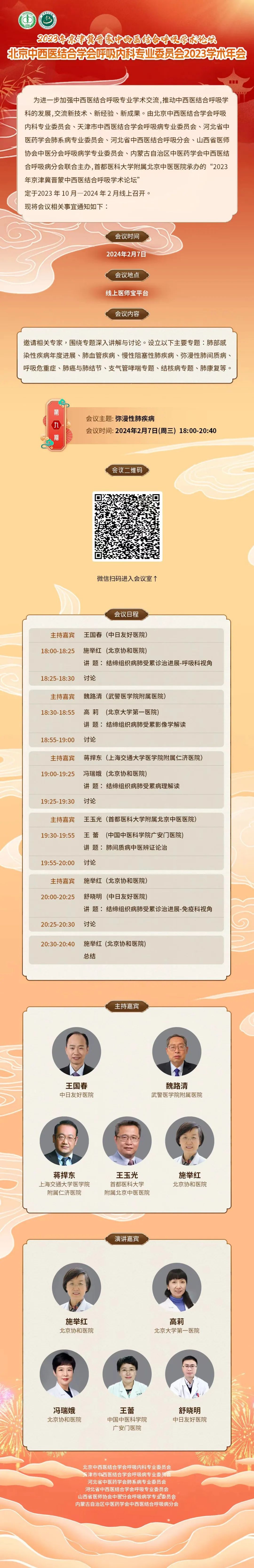 2月7日(周三) 18:00,首都医科大学附属北京中医医院承办的“2023年京津冀晋蒙中西医结合呼吸学术论坛”即将召开。