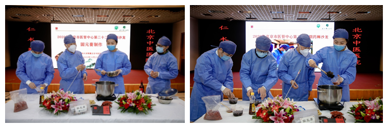 随后,王国宝教授演示并讲解了固元膏的制作过程,现场的药师们分组动手制作固元膏。沙龙气氛活跃,药师们积极互动。通过膏方知识讲座、固元膏现场讲授制作、学员观摩实操,促进了药学人员对膏方内涵认识的提升,强化中医药在疾病预防中的作用,继承和弘扬中医药文化,推进中药在健康服务中的合理应用。