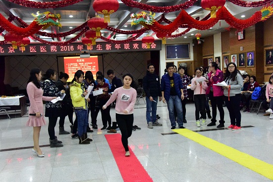会上,刘清泉院长总结了我院近几年在教育方面取得的成绩,形成了本科、硕士、博士一条龙的培养渠道,给同学们搭建了一个发展和展示自我的平台。他勉励大家刻苦学习、努力工作,为医院的发展做出更大的贡献。徐春军副院长总结了一年来教育工作亮点,希望学生们好好学习,强练内功,不断提高自己。同时给同学们和家人送去新年的祝福。晚会在激情飞扬的“Only you”热舞中拉开序幕,同学们分成“仁、术、勤、和”四个组,开展了“采药郎”、“心心相印”等游戏。(教育党支部:王红梅)