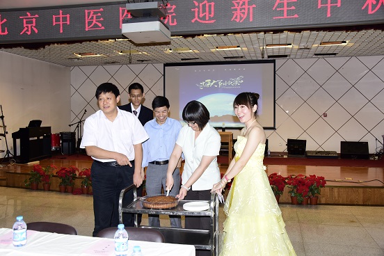 活动之二,中秋前夕,在医院多功能厅举办“2015级新生中秋联欢会”,院长刘清泉、党委副书记程军、副院长徐春军及教育处的老师们与学生们欢聚一堂。在劲歌热舞声中,院领导为学生们切大月饼,与大家一起分享。此时此刻,身在异乡的新生们融入了这温馨的大家,暂时忘却了思家之苦念。