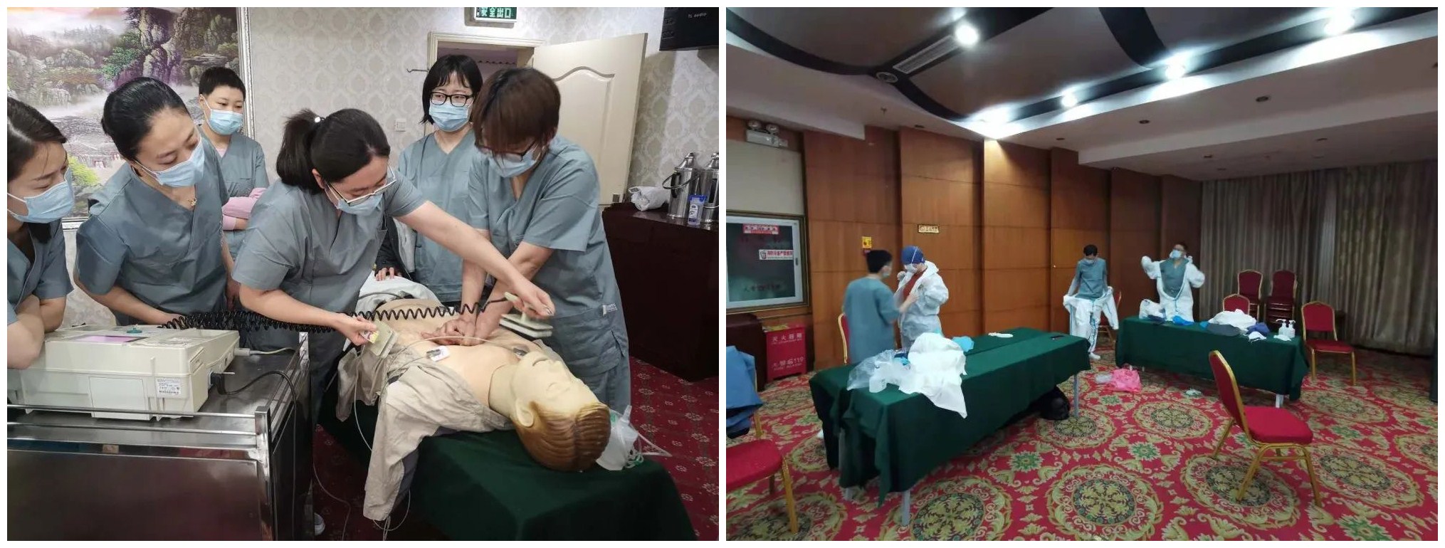 初到北京小汤山定点医院,队员们每天都在紧锣密鼓地加班学习各种培训和操作课程,内容包括防治护理相关基础、专业知识、危重病人护理管理和心理疏导等。从理论知识培训到护理操作,大家都很认真地完成每项任务,在老师的指导下,利用三个晚上的休息时间练习穿脱隔离衣,持续加深对疫情救治的每个细节操作的重要性的认识和掌握,反复练习,确保标准操作,科学处置,顺利通过考试。通过两次病房流程演练,全程各个环节包括突发事件共十三项流程无失误,保证了更加安全高效地进行筛查救治工作。