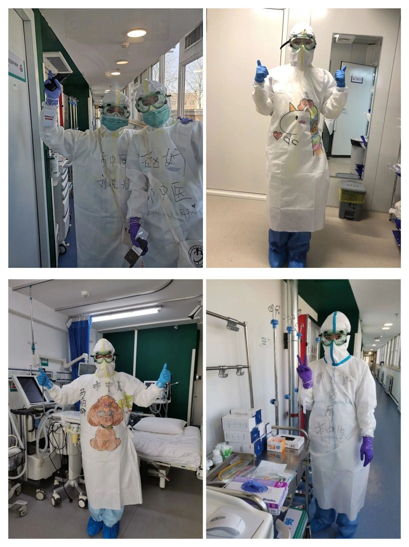 当旅客检测结果阴性时,释放的不仅是他们紧张的神经,队员们也跟着松了一口气。每当脱下密不透风的防护服和浑身被汗水浸透了的衣服,摘下口罩护目镜,露出被勒淤血的脸,队员们大口呼吸着清爽的空气,就会感觉又一次成功战胜了闷热、呼吸不畅、视野受限、缺氧无力、体力成倍消耗的一关。工作虽艰苦,但姑娘们的心态都很乐观,画在防护服上简单的图案,就如同衣服上的美少女战士漫画,给每一个白衣素甲的“女团”战士以勇气和力量,勇敢地和病魔赛跑,拼尽全力,守住“第一国门”。