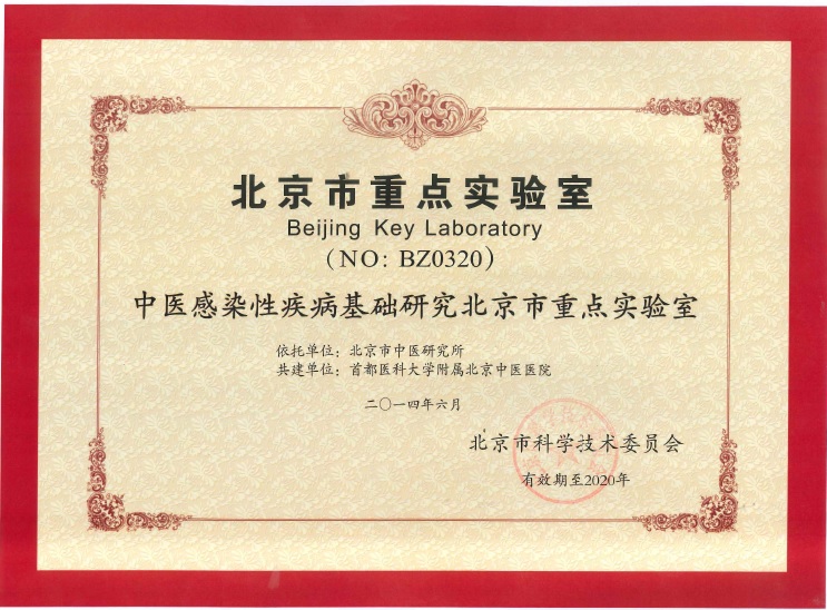 中医感染性疾病基础研究北京市重点实验室于2014年6月获北京市科委批准,依托单位为北京市中医研究所,共建单位是首都医科大学附属北京中医医院,实验室负责人刘清泉教授。实验室是国家中医药管理局“十一...