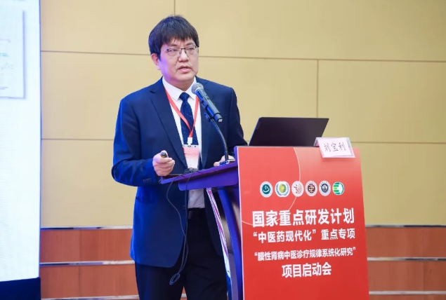 项目负责人刘宝利教授从立项依据、研究目标、研究方案、预期成果等方面对整个项目情况做了详细介绍。他指出,该项目以临床需求为导向,系统探索膜性肾病的中医诊疗规律,将为中医药治疗膜性肾病提供科学依据。