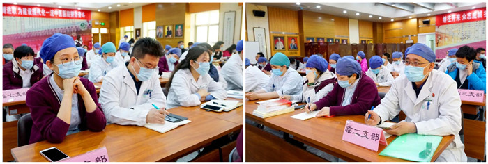 党委书记董杰昌作动员讲话,他提出,全院党员干部要提高政治站位,深刻认识党史学习教育的重要意义,切实增强学习党史的政治自觉、思想自觉、行动自觉。从党的伟大历程、伟大贡献、伟大精神中汲取启航新征程的智慧和力量。做到系统完整学、结合实践学、带着问题学,尤其要找准建党100周年与建院65周年的结合点,创造性地开展知识竞赛、原创征文等活动,丰富“宽街”文化内涵。抓实学习教育与实际工作的融合点,在推进“我为群众办实事”中,扎实提升服务质量,回应好职工和患者的期盼。
