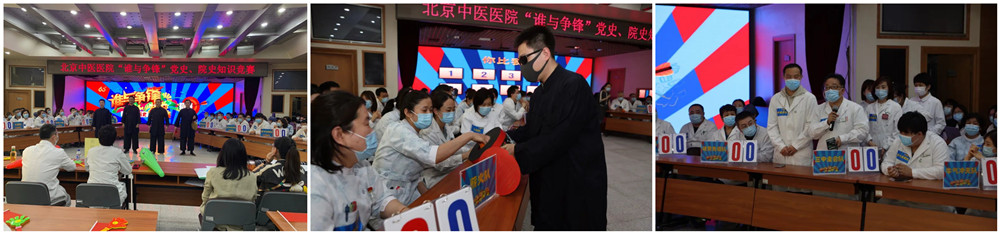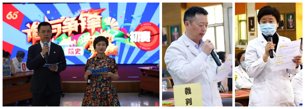 知识竞赛由党办高梦然、骨科吴迪主治医师主持,纪委委员刘斌、宣雅波担任评委。