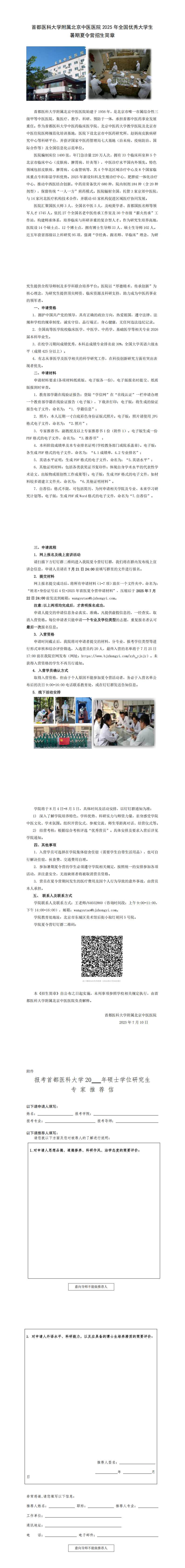首都医科大学附属北京中医医院2025年全国优秀大学生暑期夏令营招生简章