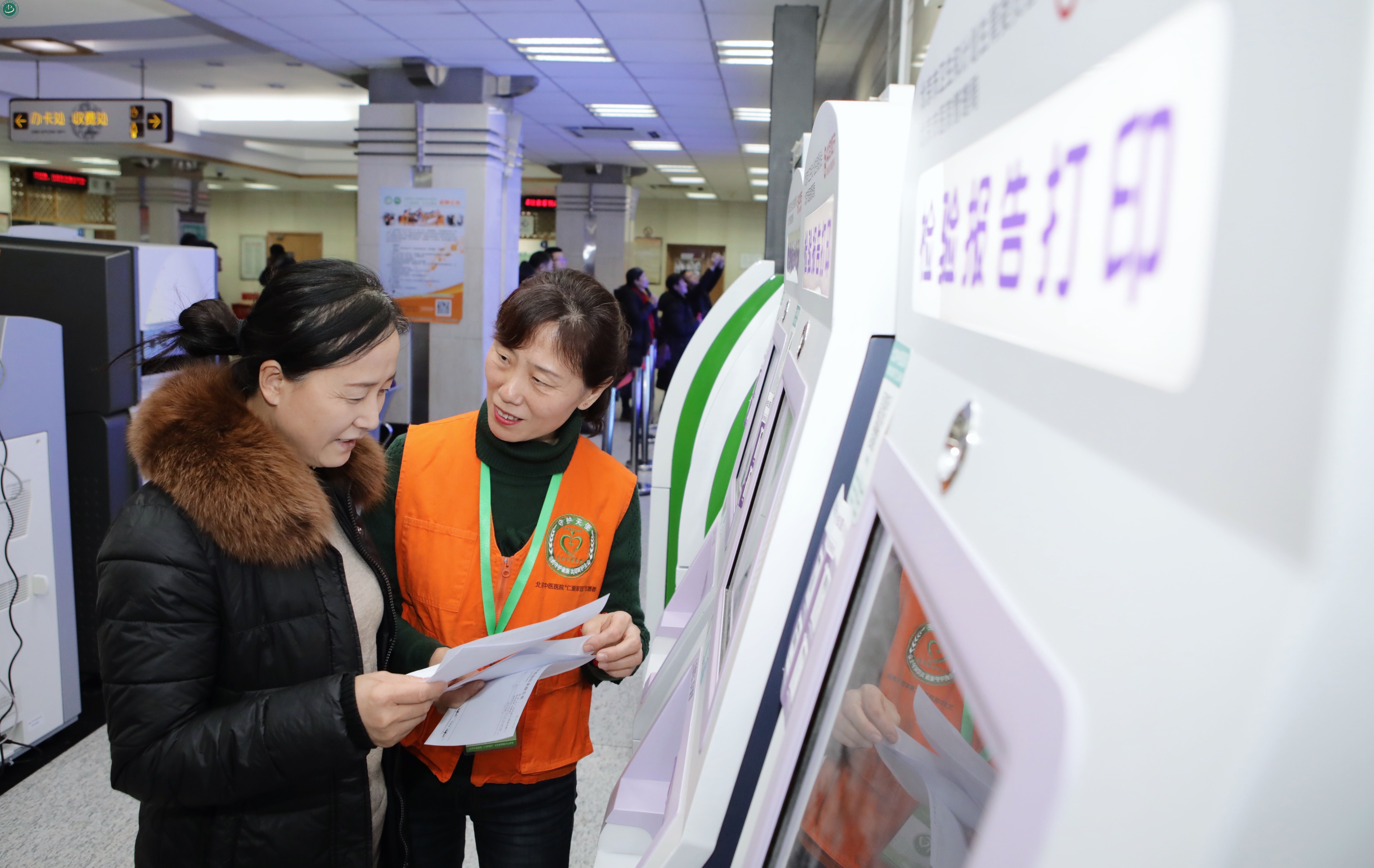 来到北京中医医院门诊大厅,如果您想在自助服务区完成挂号、缴费、打印化验单等业务,没问题,找到黄马甲志愿者,立马帮您解决!